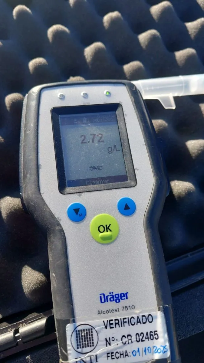 El test realizado por el inspector de turno reveló un nivel de 2.72 g/l de alcohol en sangre, superando ampliamente el límite permitido. Debido a la gravedad de la falta y el intento de fuga, el vehículo fue trasladado al corralón municipal mediante la utilización de una grúa.