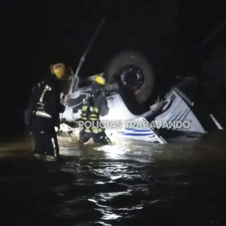 Al llegar al lugar, los rescatistas constataron que la cabina del camión se encontraba completamente bajo el agua y tras intensas maniobras entre los hierros retorcidos, se confirmó el fallecimiento del conductor.