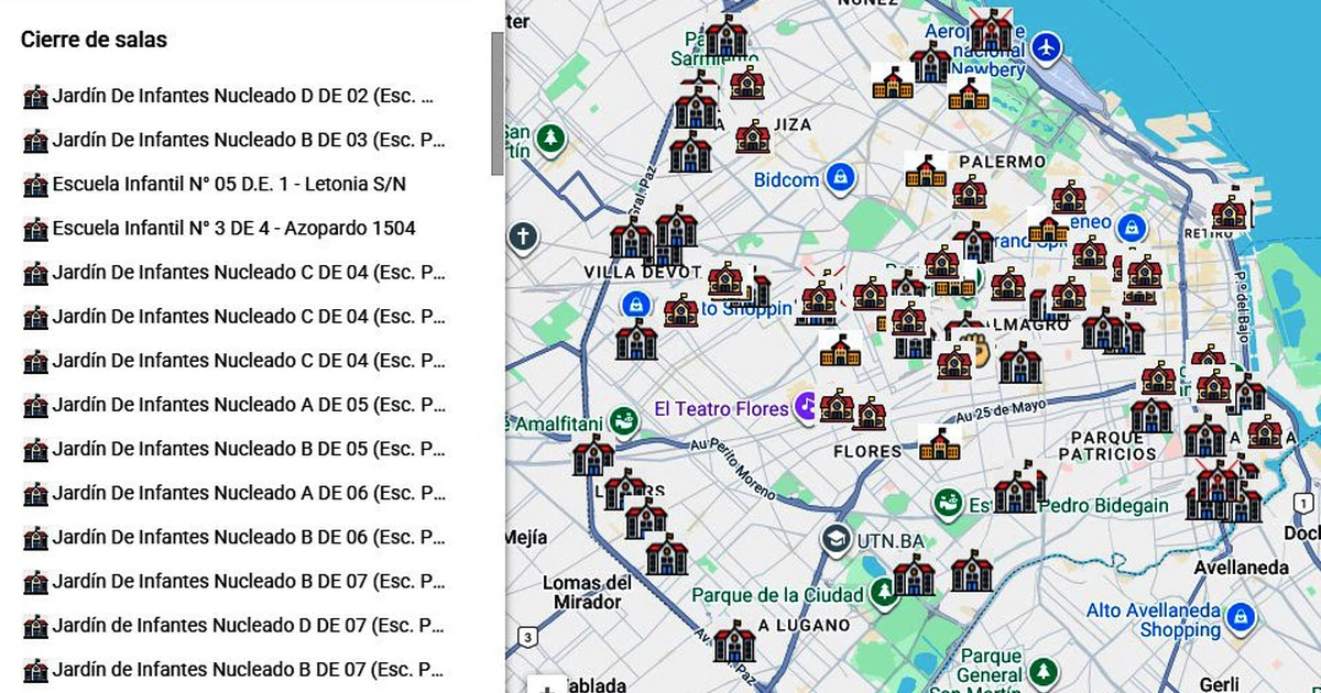 Tras la respuesta a un pedido de informes solicitado por el diputado porteño Gabriel Solano, crearon un mapa con los cierres de grados, salas de jardines y cursos que está ejecutando el gobierno de Macri. Un diagrama que sirve para visibilizar en el territorio porteño como avanza el desmantelamiento de la educación pública y gratuita en todo el distrito.