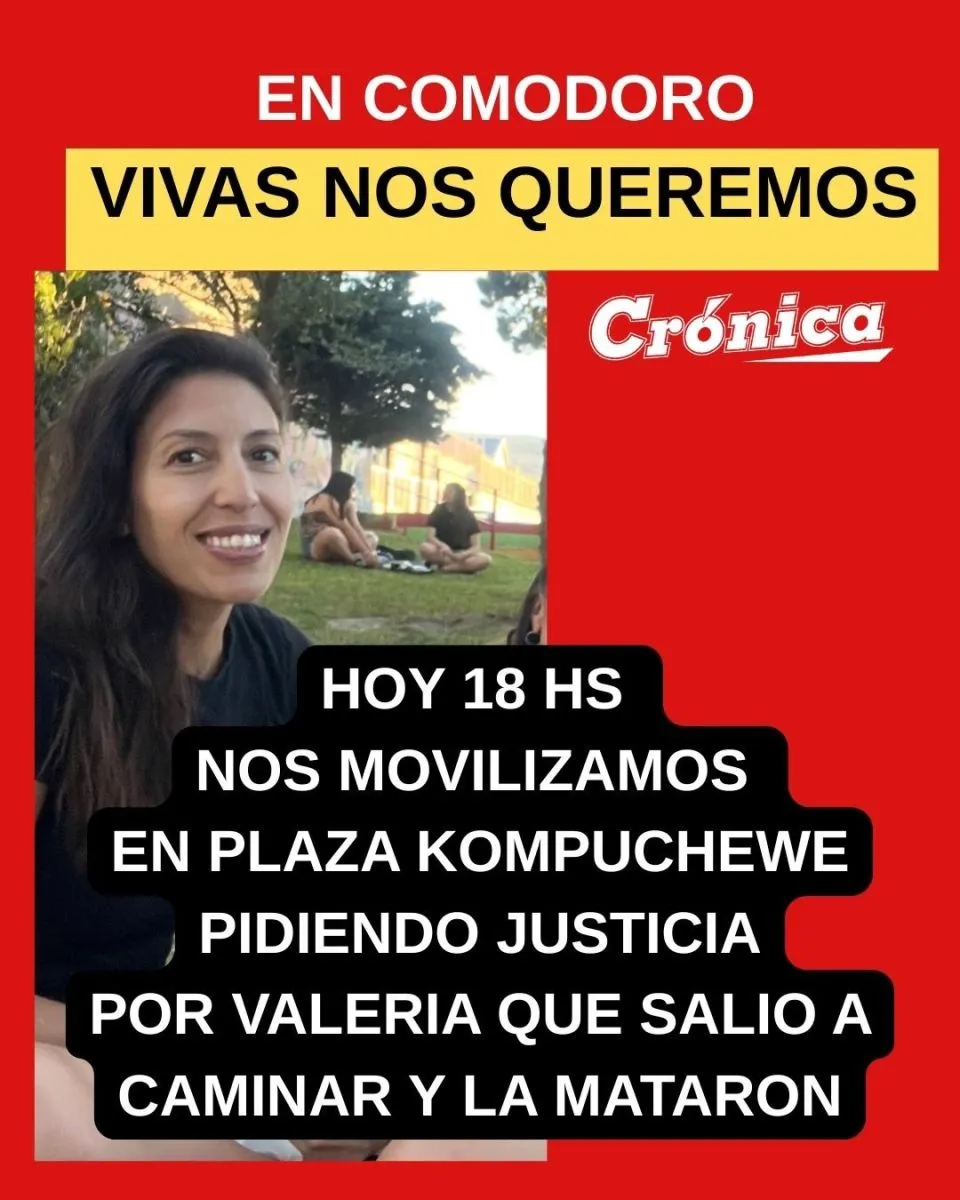 Ante el profundo dolor por la pérdida, familiares y amigos de Valeria Schwab convocaron a una movilización para este miércoles a las 18 horas hacia la Unidad Regional, en la zona de la plaza Kompuchewe, frente a la Escuela N°83.