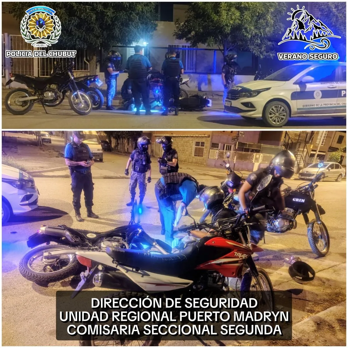 Ante la evasión, personal del Grupo de Respuesta Inmediata Motorizada (G.R.I.M.) inició una persecución del motovehículo, activando balizas y sirenas. La acción policial se extendió por varias cuadras dentro del ejido urbano de Puerto Madryn, manteniendo el objetivo de interceptar al conductor.