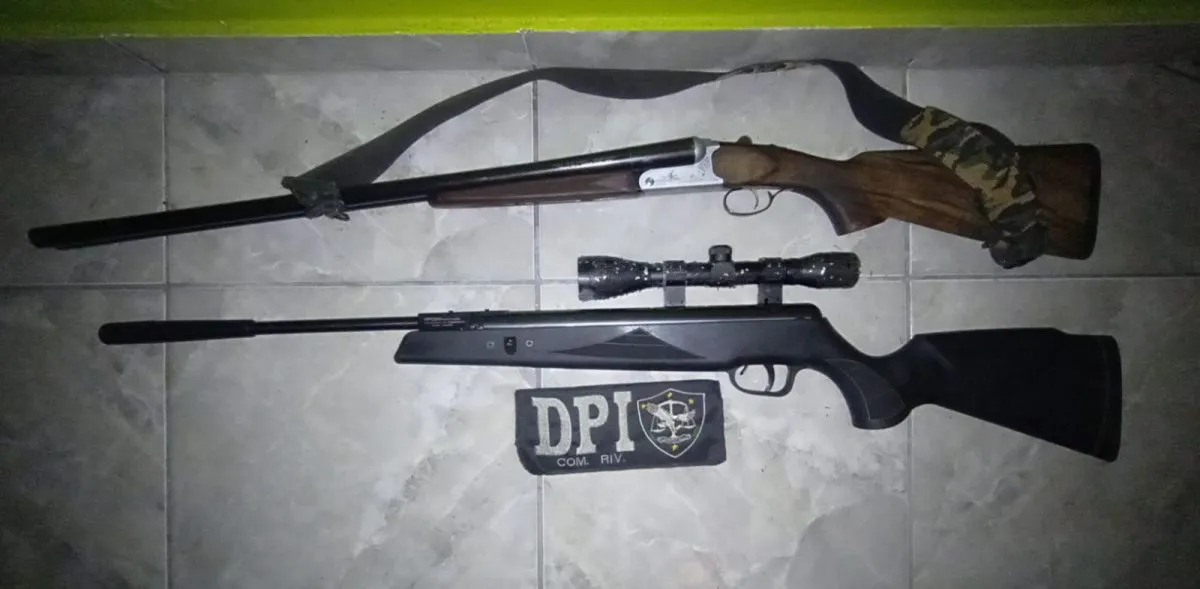 Durante los allanamientos, los efectivos incautaron un importante arsenal compuesto por escopetas, carabinas calibre 22, chalecos antibalas con placas, cargadores y más de un centenar de cartuchos de distintos calibres.
