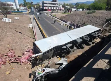 Un camión frigorífico volcó en la localidad de Guaymallén, en la provincia de Mendoza, y dejó varios kilos de carne desparramados sobre el asfalto.