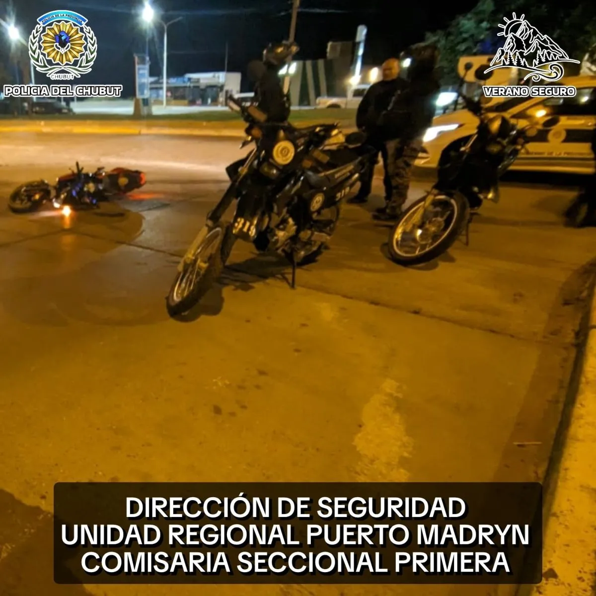 Personal del Grupo de Respuesta Inmediata Motorizada (GRIM) de Puerto Madryn se encontraba realizando un patrullaje preventivo en el Boulevard Brown. Al observar un motovehículo, los uniformados procedieron a realizar señales lumínicas y sonoras reglamentarias con el fin de identificar a su conductora. Sin embargo, la persona al mando del rodado no acató la orden y aceleró su marcha, huyendo por la calle Abraham Mathews.