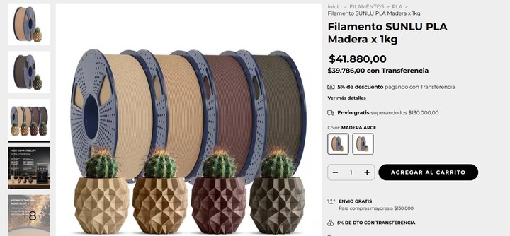 Es un hilo ultradelgado enrollado en un carrete que la máquina calienta durante la impresión, derrite y deposita capa por capa para formar una pieza. Hay opciones de 1 kilogramo y su precio va de los 20.000 a 190.000 pesos dependiendo del tipo de material.