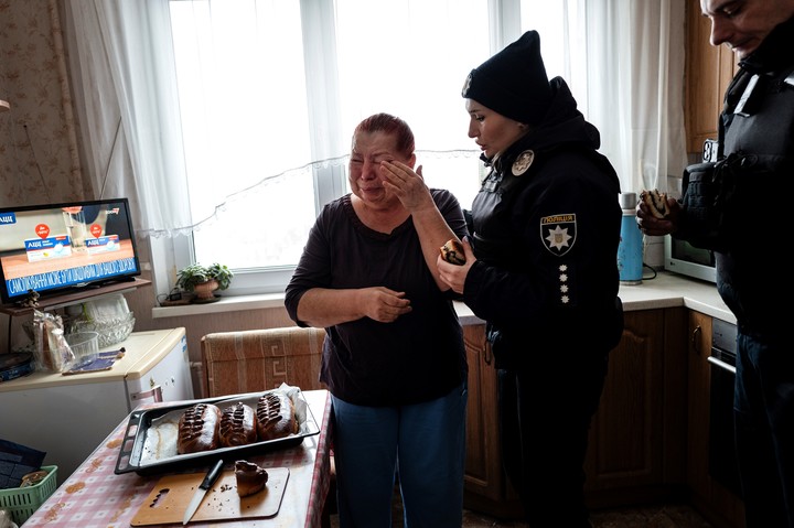 Tetiana Keleinikova, de 72 años, se despierta a la 1 de la mañana para hornear en su horno eléctrico.