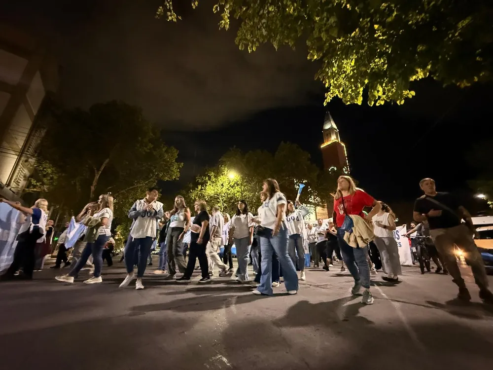 Fue así que docentes nucleados en UDAP, UDA y AMET protagonizaron el “ruidazo docente”, que reunió a unas 300 personas en la plaza, donde exigieron mejoras salariales y cuestionaron la propuesta del Gobierno Provincial.