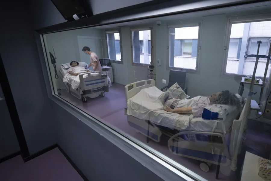 «Se trabaja con las simulaciones sobre el error como fuente de aprendizaje», añade. En el caso de Enfermería se enseña a mover a un paciente dentro de la cama o a manejar una membrana extracorpórea.